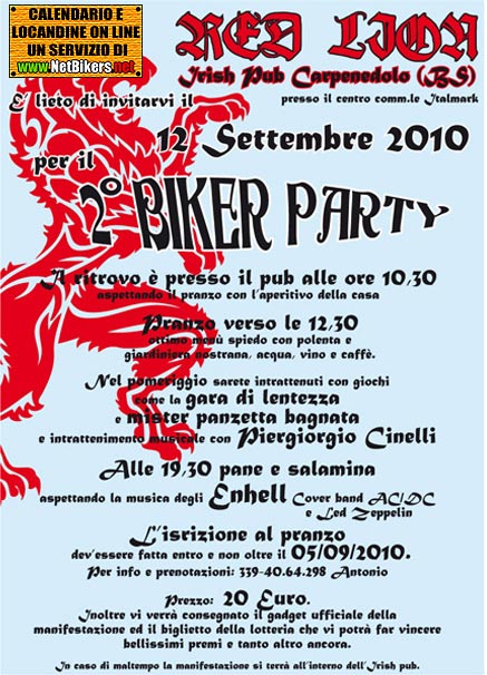 Evento: 2° BIKER PARTY AL RED LION IRISH PUB 2010 Motoraduno Carpenedolo Brescia (BS) -